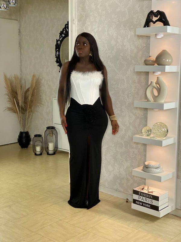 Jupe longue à détails de roses.